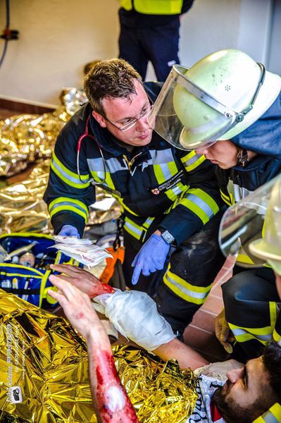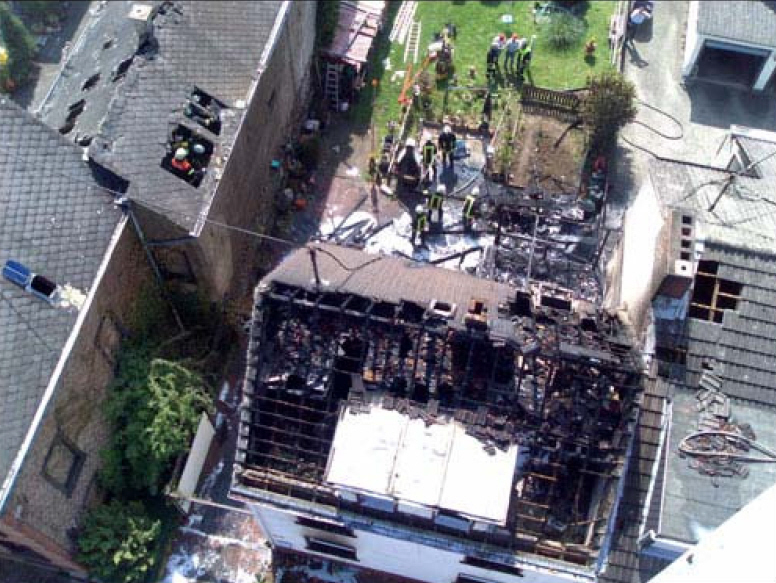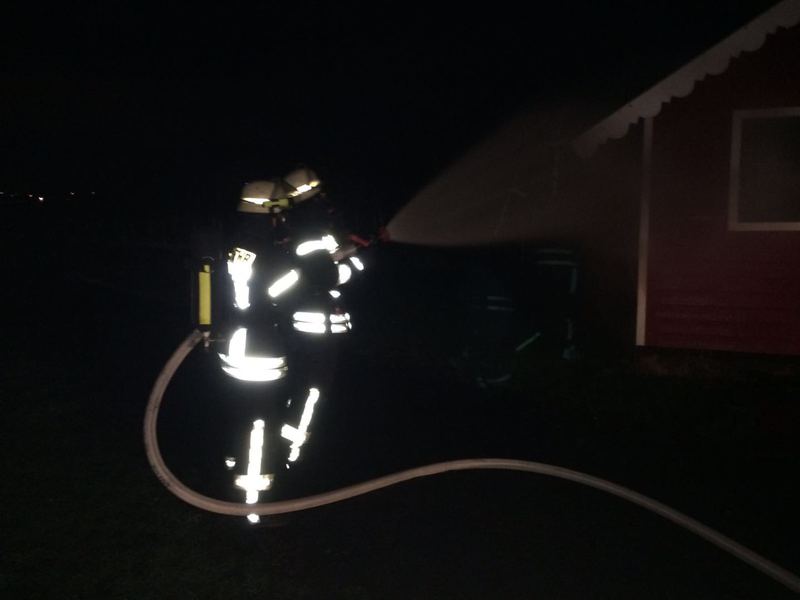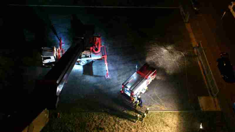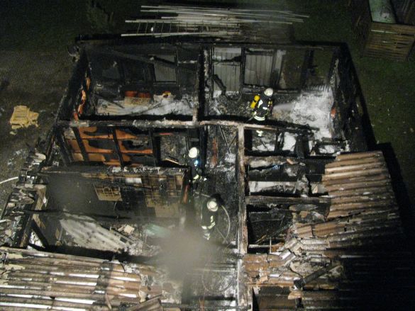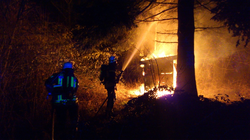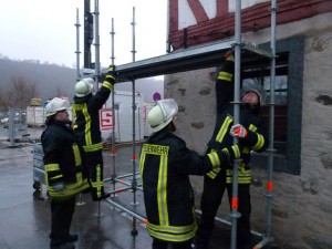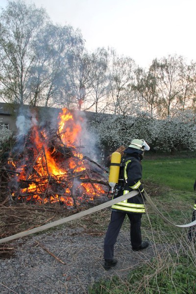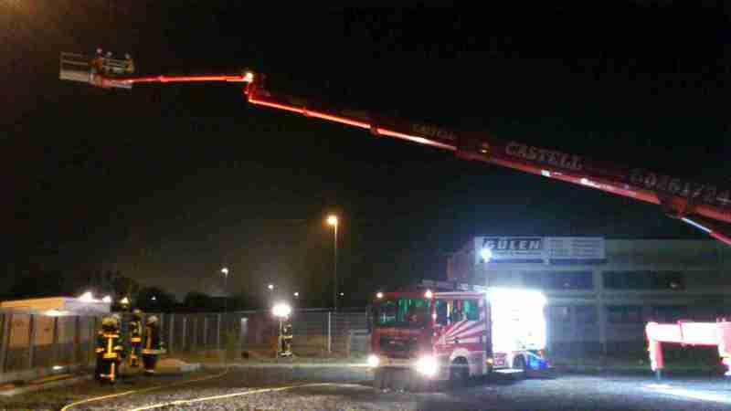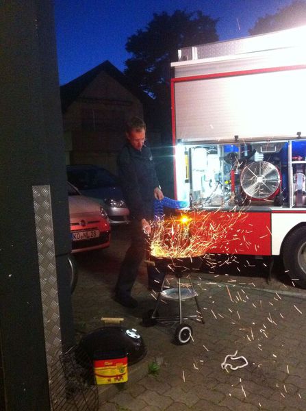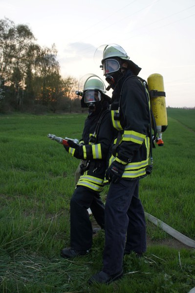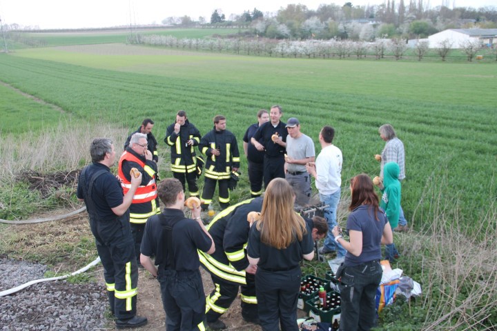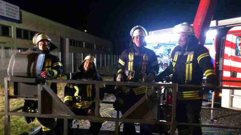 In einer alten Kiesgrube war ein Fahrradfahrer gestürzt und musste mit der Schleifkorbtrage gerettet werden. Parallel dazu kam es zu einem Entstehungsbrand in einer anliegenden Werkstatt.